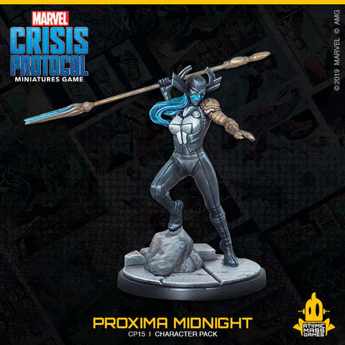 Devoted members of Thanos’ Black Order, the husband and wife team of Corvus Glaive and Proxima Midnight have terrorized the galaxy in service to their dark master. Proxima Midnight takes great pleasure in testing herself in battle, relying on her inhuman speed, strength, and agility and her spear, which houses a star trapped in a quantum singularity.